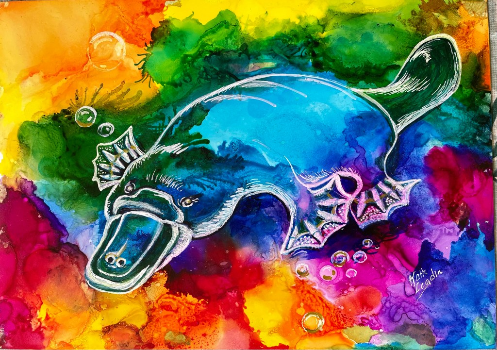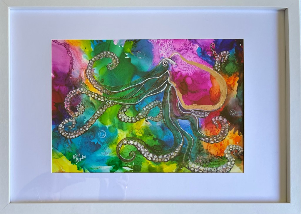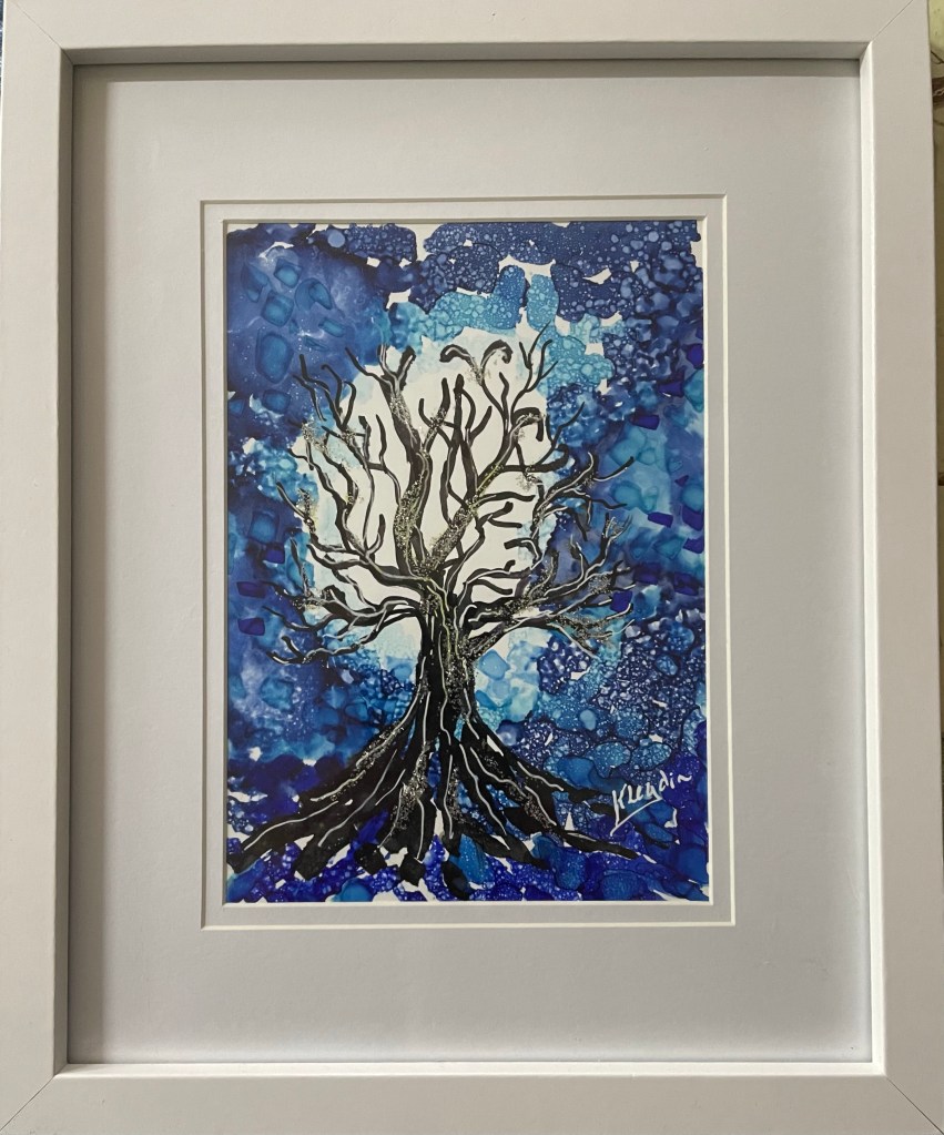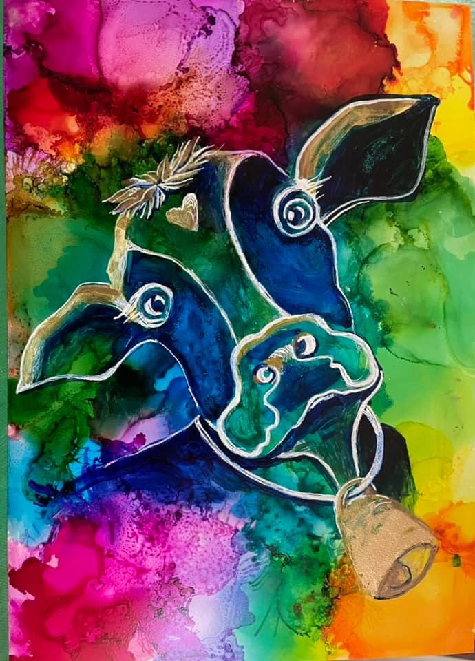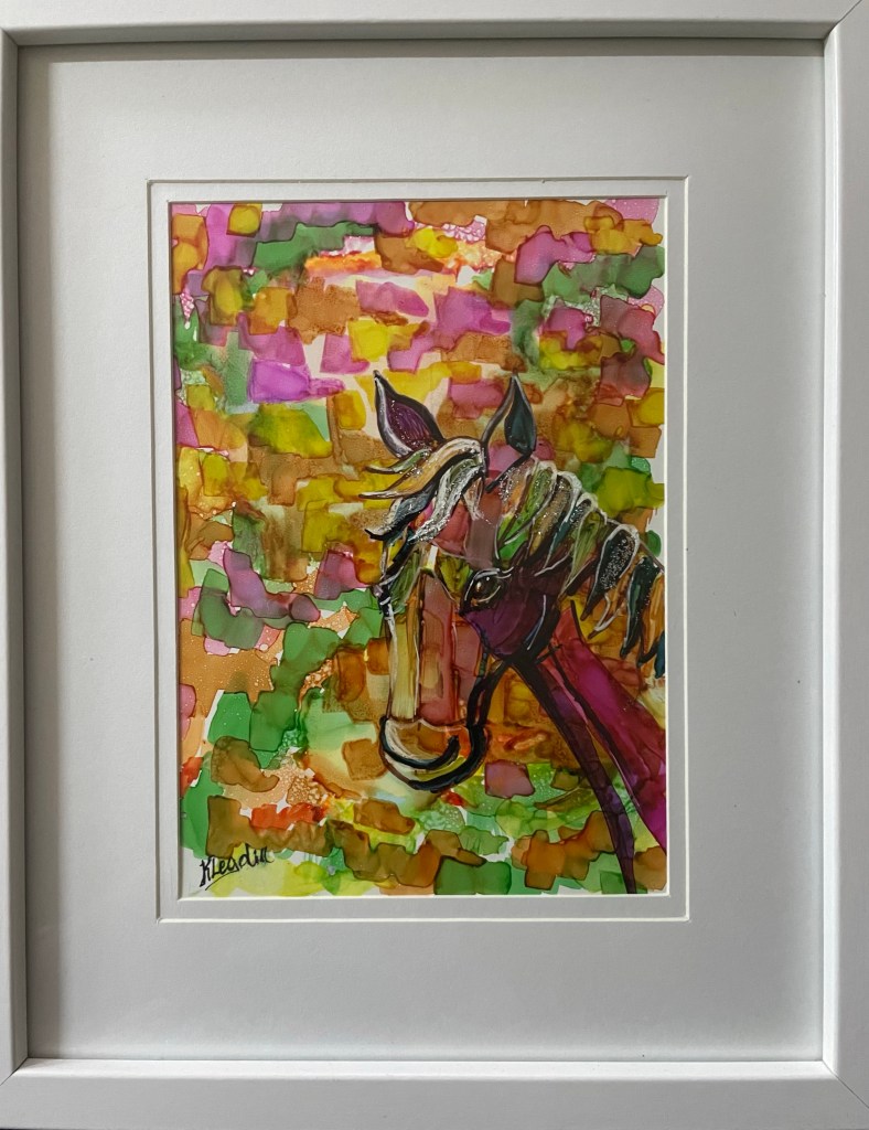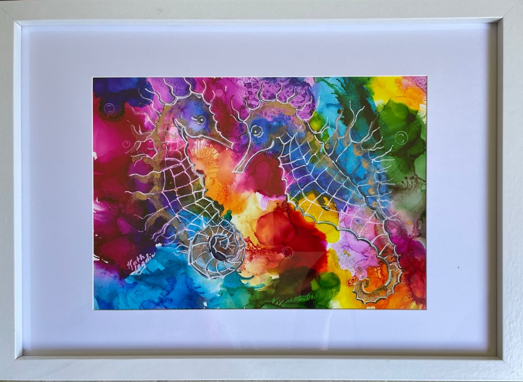 I ventured into experimenting with this medium in recent years. It is particularly challenging as the inks have a mind of their own and dry very quickly. The end result however is very bright and appealing. The ink colours are reminiscent of the intense colours often found in leadlight windows and murals.